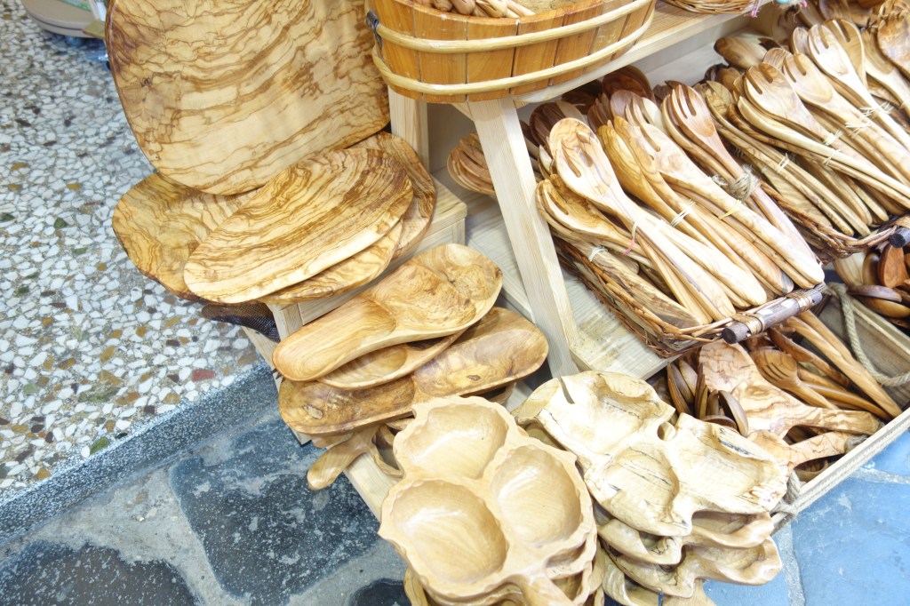 Le bois d’olivier est énormément travaillé sur l’île de Corfou et je peux vous dire qu’il y a des TAS de petites boutiques qui en proposent.