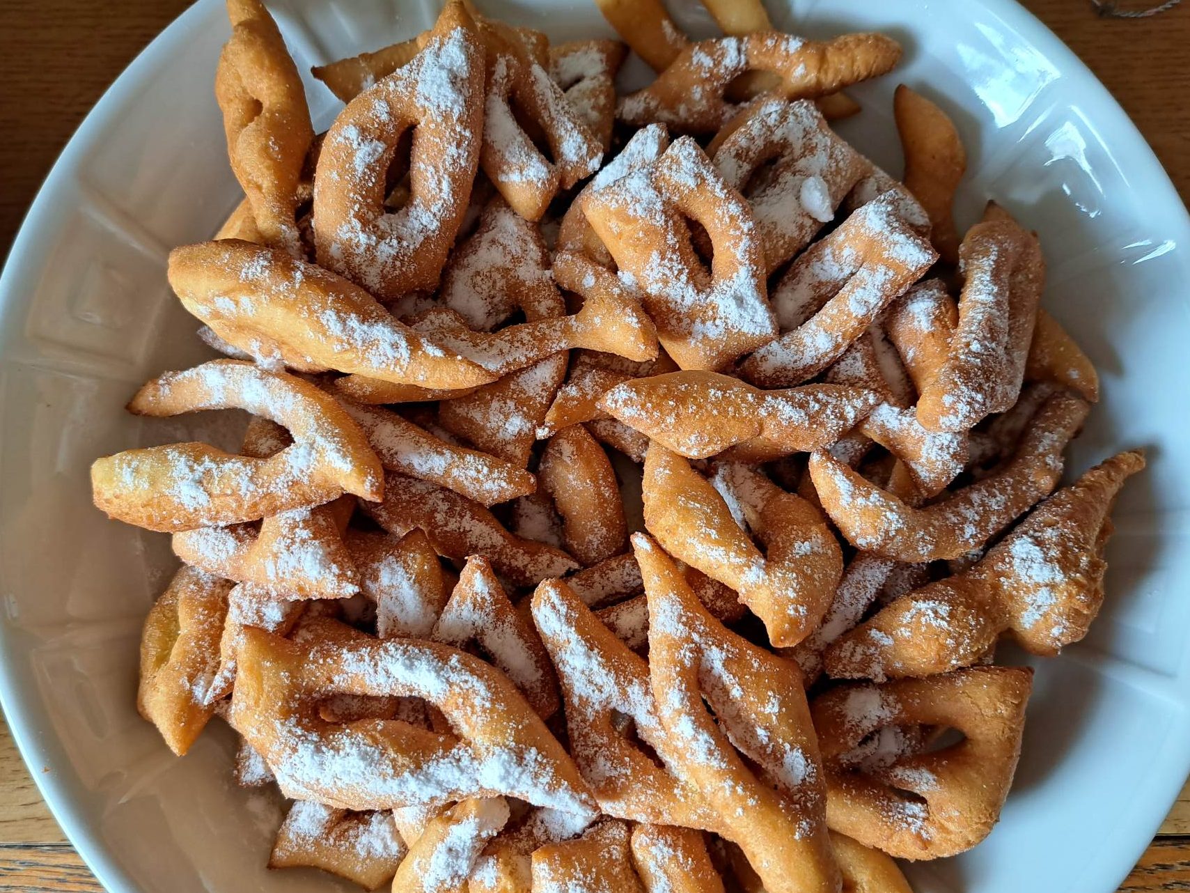 Une fois doré, retirer les beignets et les laisser égoutter dans un plat avec de l’essuie-tout. Puis, retirer l’essuie-tout et saupoudrez de sucre glace.