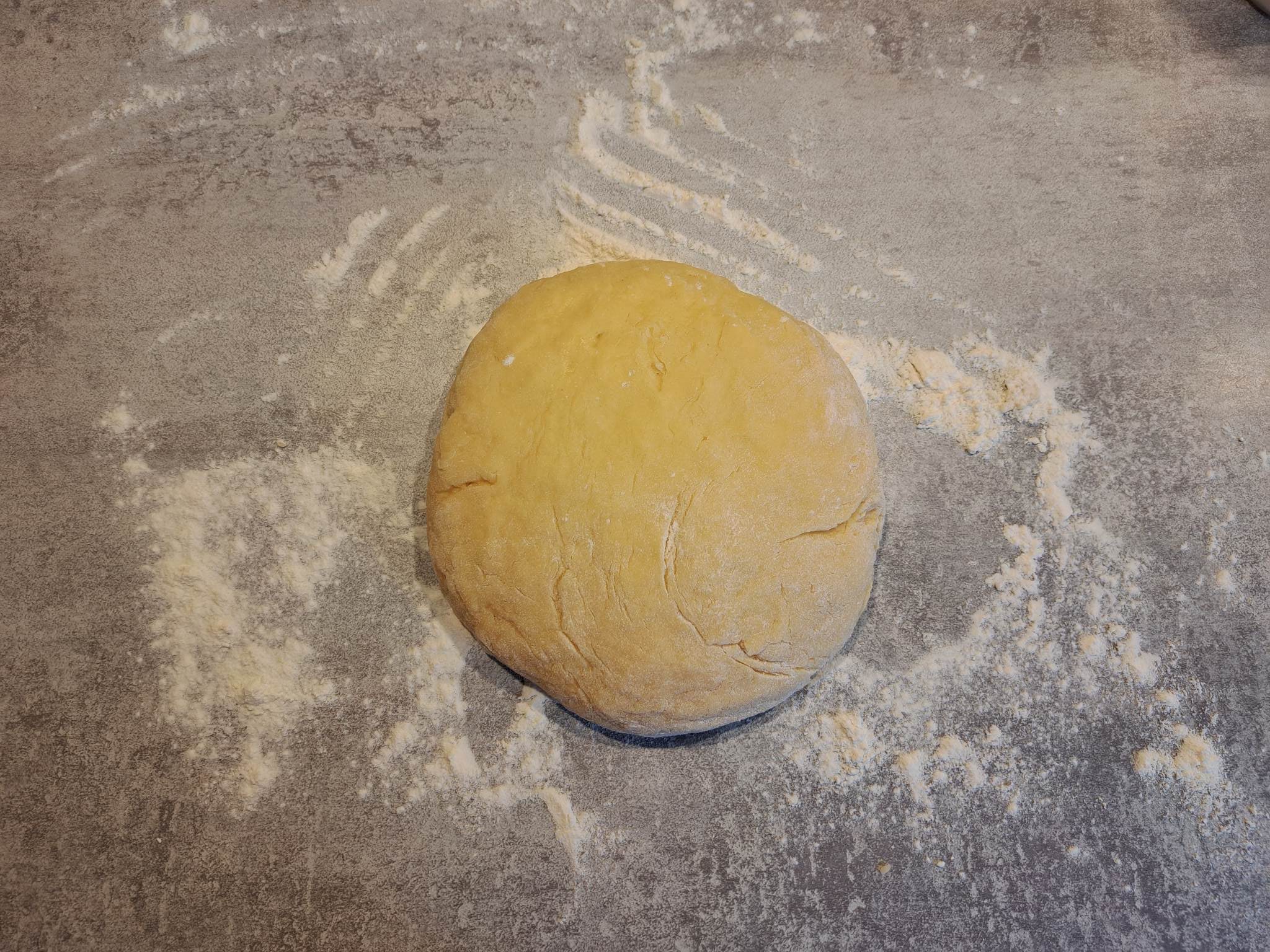 Après 2 heures de repos, fariner le plan de travail et faire une boule.