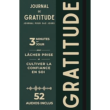 Un audio hebdomadaire narré par une voix féminine authentique, chaleureuse et apaisante, qui t’aide à te recentrer et t’éclairer autour de 12 grands thèmes de gratitude Conçu pour les adultes qui veulent remettre du positif dans leur vie sans pression, ce journal est sans date, utilisable toute l’année, et parfaitement adapté même si tu as déjà abandonné trois carnets avant celui-là ! Tu veux ancrer la gratitude dans ton quotidien, retrouver confiance, apprendre à lâcher prise, et enfin penser à toi ? Ce journal est fait pour toi.